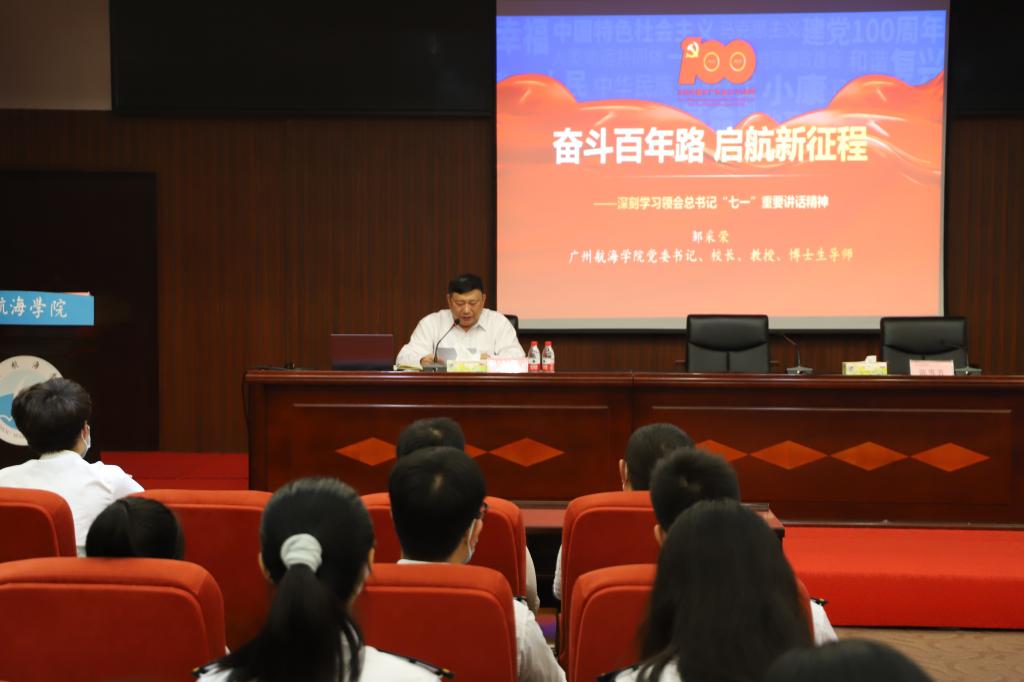 开班仪式结束后,在全场热烈的掌声中,邹书记、校长为全体学员上了主题为《百年辉煌路 奋进正当时——深刻学习领会习近平总书记“七一”重要讲话精神》的党课和思政第一课。邹书记、校长深入浅出地阐述了习近平总书记“七一”重要讲话的重大意义,深入解读了我们党百年来四个历史时期创造的四个伟大成就,以四个伟大成就的历史事实向世界发出四个庄严宣告等核心内容。还详细解读了伟大建党精神的深刻内涵和时代价值,以及在新征程上以史为鉴、开创未来的“九个必须”的宝贵经验和实践启示。还解读了总书记对广大青年的深情寄语。同时,还结合我校57年的办学历程,介绍了我校在中国共产党的正确领导下,在一代又一代广大师生的共同努力下,学校发展不断取得新成就、新突破。在全国各地,在各行各业中不断涌现出大批优秀校友等情况。