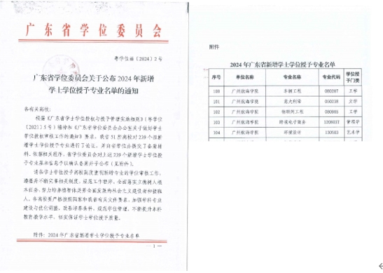 6月6日,广东省学位委员会发布《广东省学位委员会关于公布2024年新增学士学位授予专业名单的通知》(粤学位〔2024〕2号),公布了今年新增学士学位授权专业。我校车辆工程、物联网工程、跨境电子商务、意大利语、环境设计等5个本科专业通过评审,顺利获得学士学位授予权。