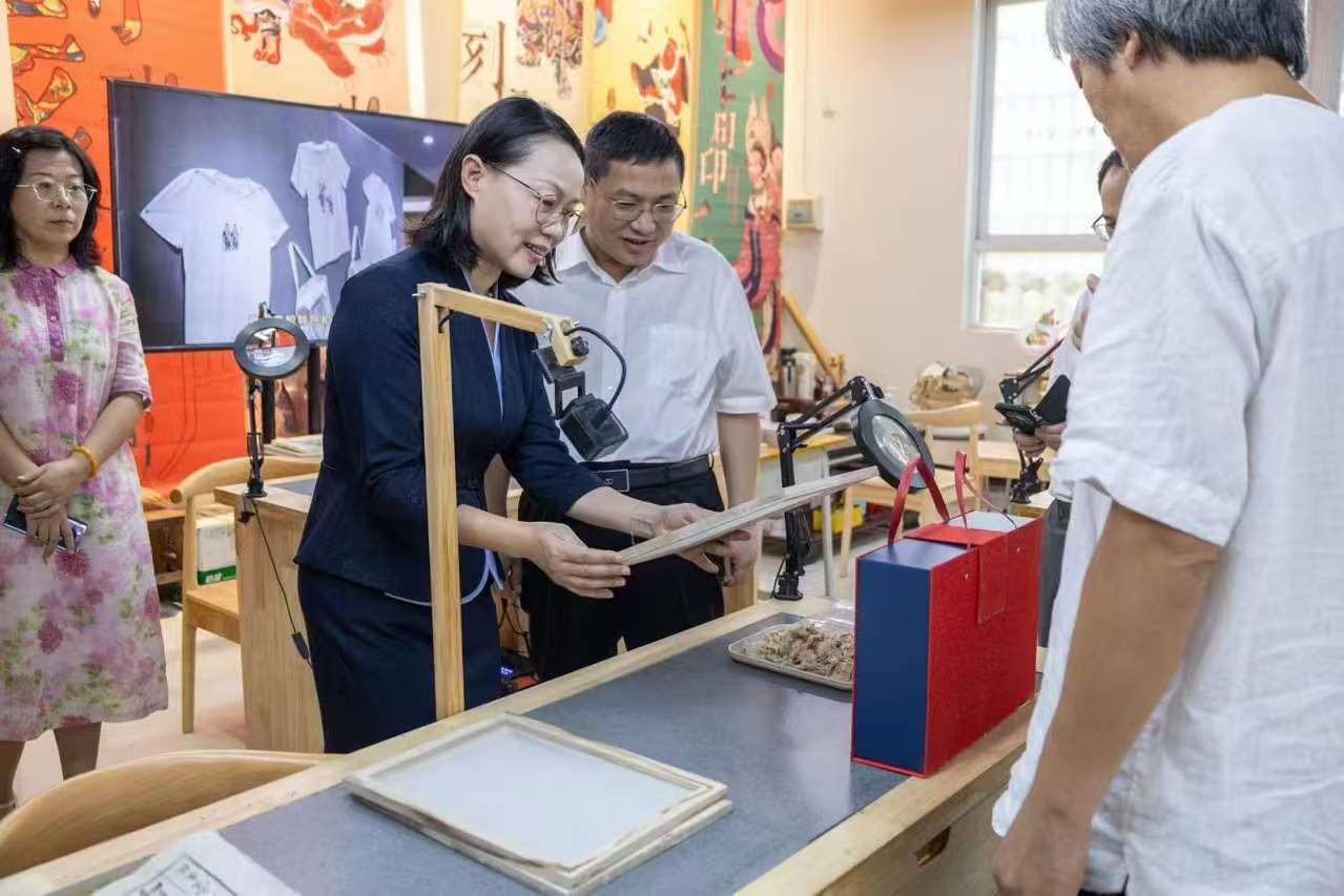 非遗传承基地(广绣)负责人郭亚东副教授详细介绍了自主研发一套数字化、适用于岭南木刻的教学工具、设备和材料,创新性“复活”木版年画,实现了非遗“进校园”到非遗“在校园”的转变,于2024年被授予为广州市非物质文化遗产传承基地(广绣)。