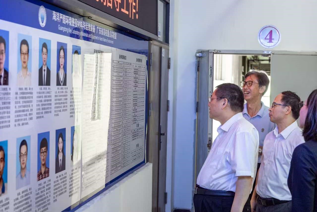 陶韶菁详细介绍了学校的发展历程、专业设置、人才培养、科研创新成果和未来发展态势;陪同调研组参观了校园,考察了“海洋严酷环境使役材料与运维装备”广东省高校重点实验室和非遗传承基地(广绣)。